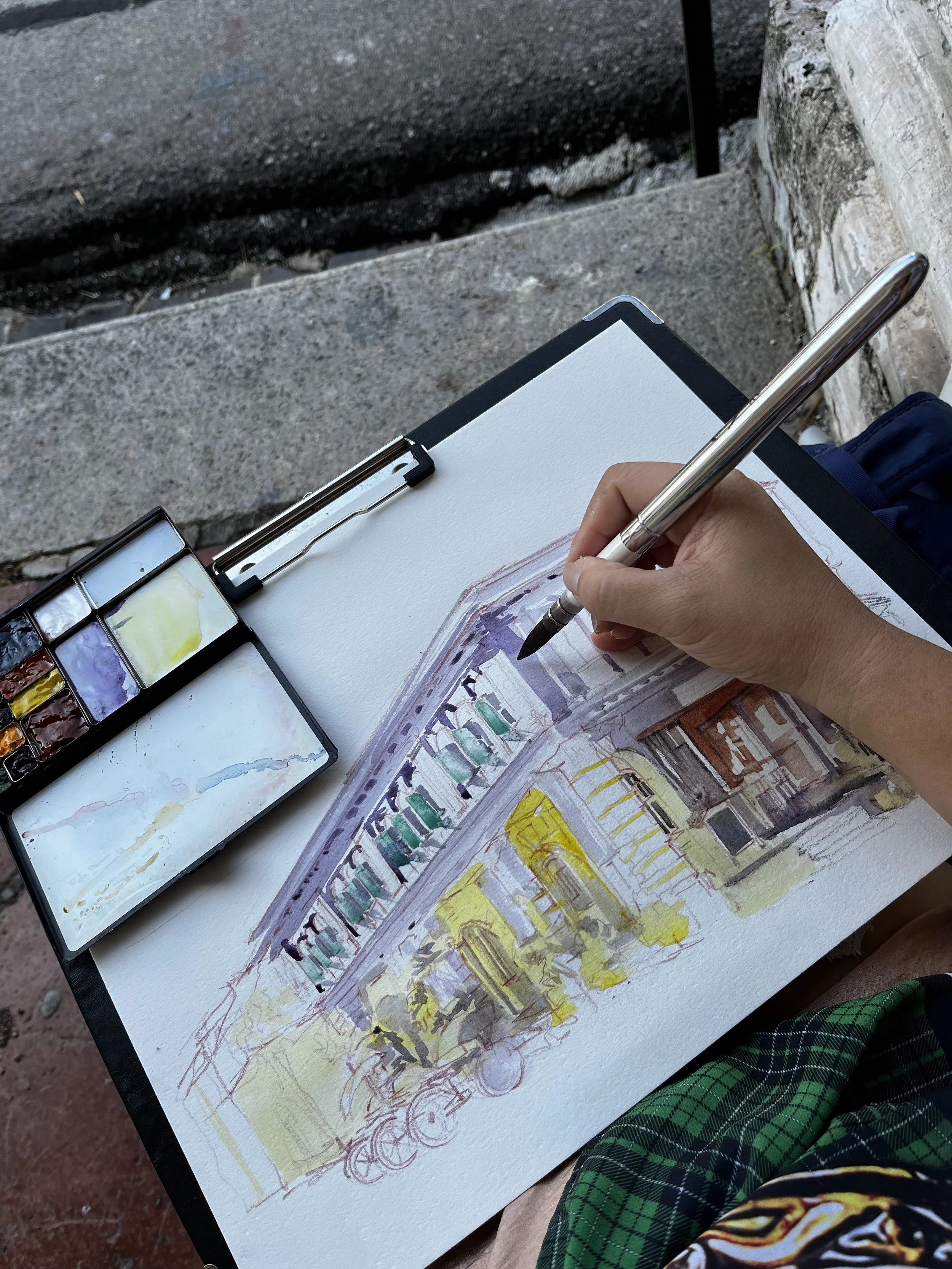 Day 2 was spend doing a morning sketch of my hotel, which was so beautiful, and there was an excellent place to sit that was spacious and shady. The painting I did here ended up becoming a hit and the owner of the restaurant attached to the hotel got wind of the existence of the painting and by the time I flew back to Singapore, I had sold the original artwork to him. I also end up selling two prints of the same artwork to his two friends who works and frequent the restaurant. How about that for making art that connects me to new people!