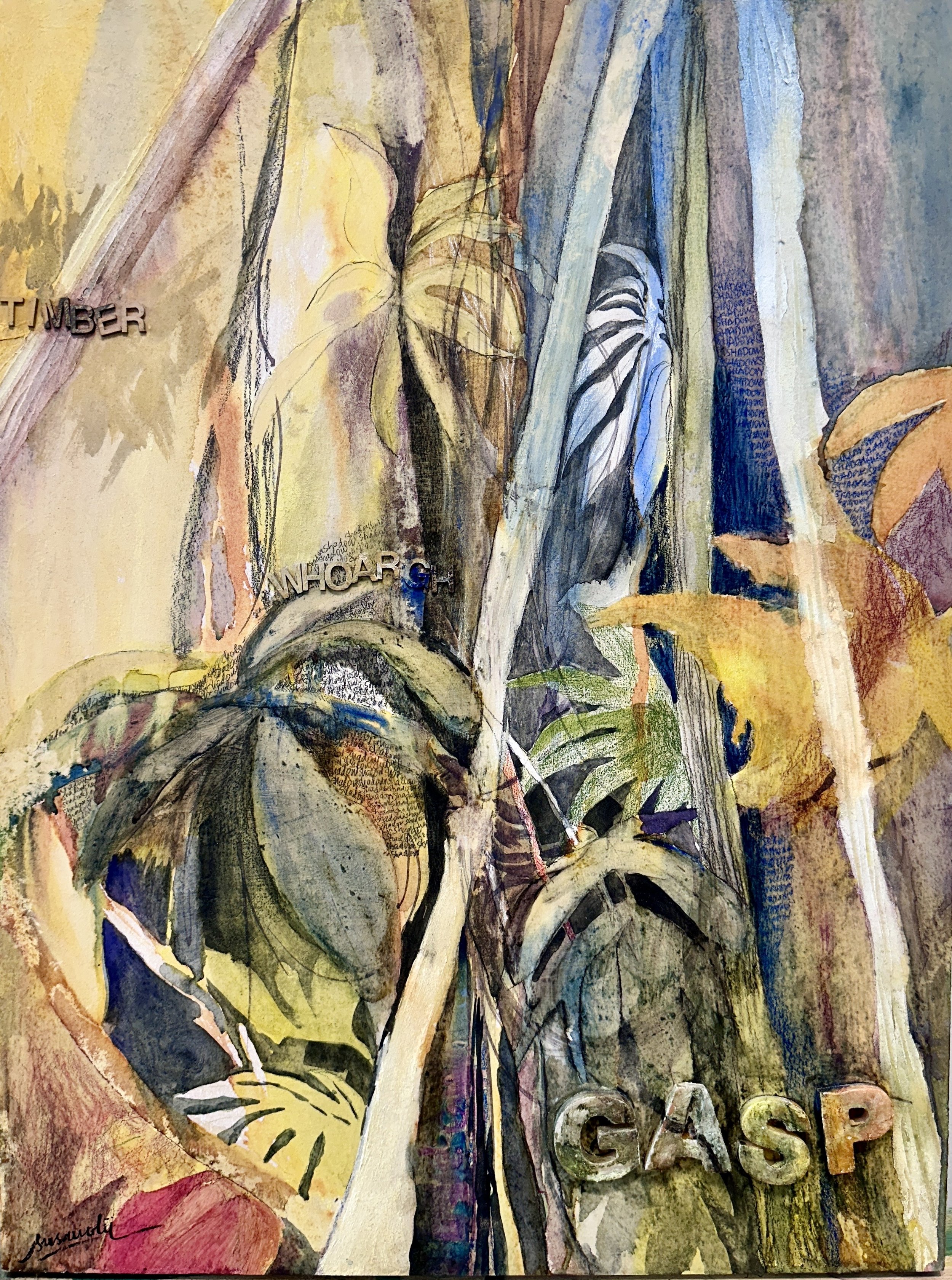 2. This piece reflect a departure from Shinrin Yoku to the sound painting, it was produced over time, not done at the same time, and took some determination to keep at it too. It’s strong because it’s funny, irreverent, it’s bold, it’s complex, and a stunner. A collector’s piece. Sold to one of my existing collectors at the Affordable Art Fair Singapore 2025.