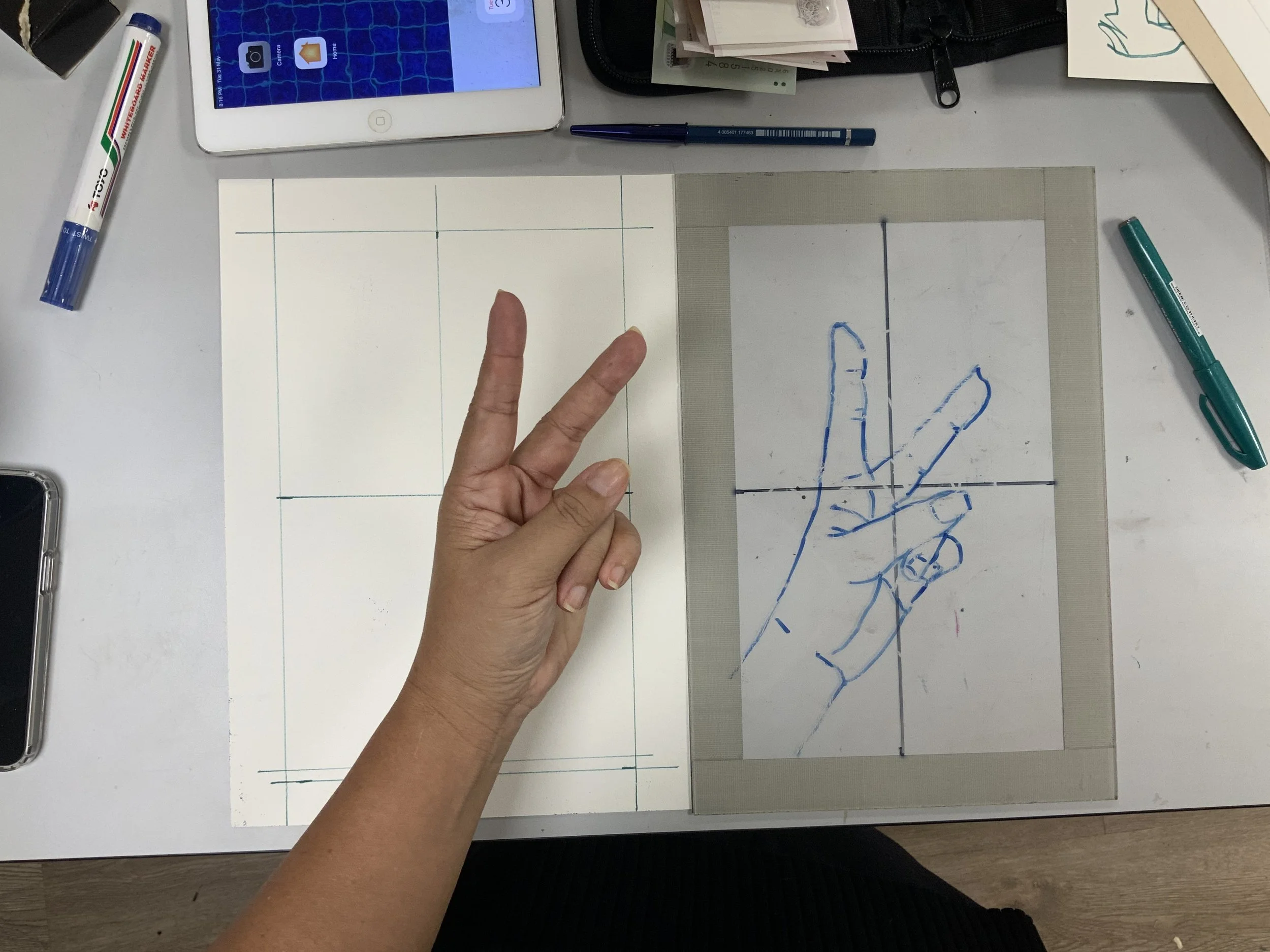 When your drawings appears out of proportions because the shape doesn’t feel right, you can place the perspex back to your posed hand, and check what you see. This is easier as always to squint and use one eye. I also mentioned the artist squint here