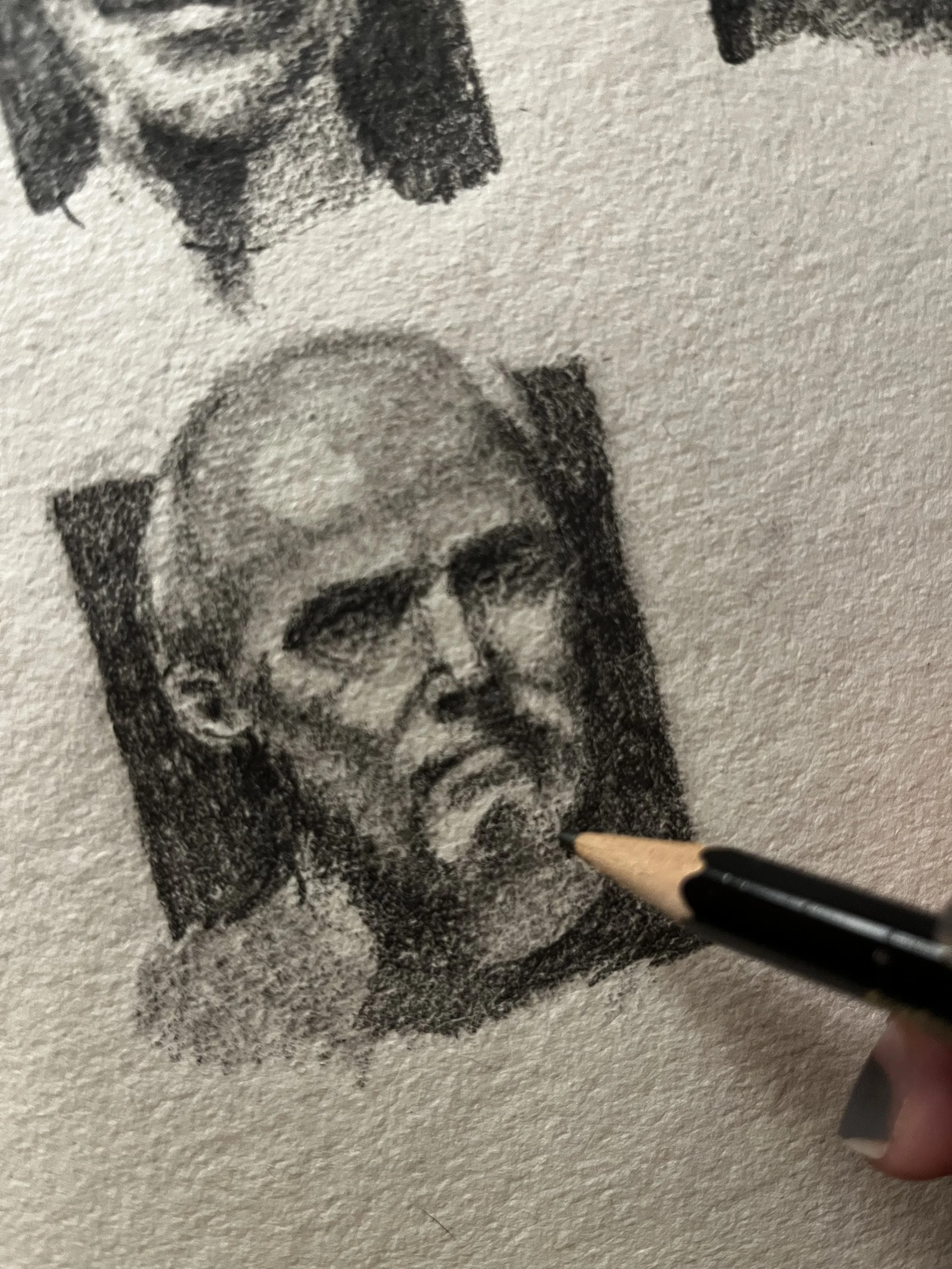 Originally these classes are meant to be using our own face and our classmates faces to observe, however because we’re still in a pandemic state of slow recovery, we cannot sit without a mask in a classroom anymore, let alone look at a friendly face to draw without a mask on. Therein lies the extra challenge but it is not all lost. There’s proportions within a masked face, and there’s a lot to observe and draw even with a mask on. Naturally our focus is no longer on the features we cannot see, but on the features we can.