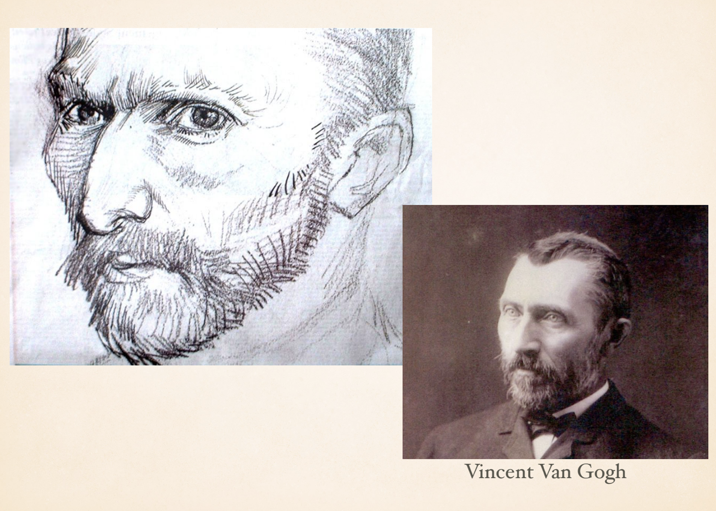 So back to the music analogy. This is the instrument class. Learn how to play your instruments by analysing great old masters such as Vincent Van Gogh, Rembrandt and modern master, and one of my favourite artists of all time, Egon Schiele. How they skill-fully use their instruments is visible in their drawings. All of these drawings are produced by the artists while looking at a mirror. So what you’re essentially seeing is the reflection of their faces, and as viewer of these drawings, we are shown what they see. Shown next to their drawings are old photograph I could find of the artists, except for Rembrandt because in his time, cameras were not yet invented. Rembrandt however was known to be the selfie artist of his time. About 100 of his self portraits exists today, and lots of sketches, and 40 oil paintings.