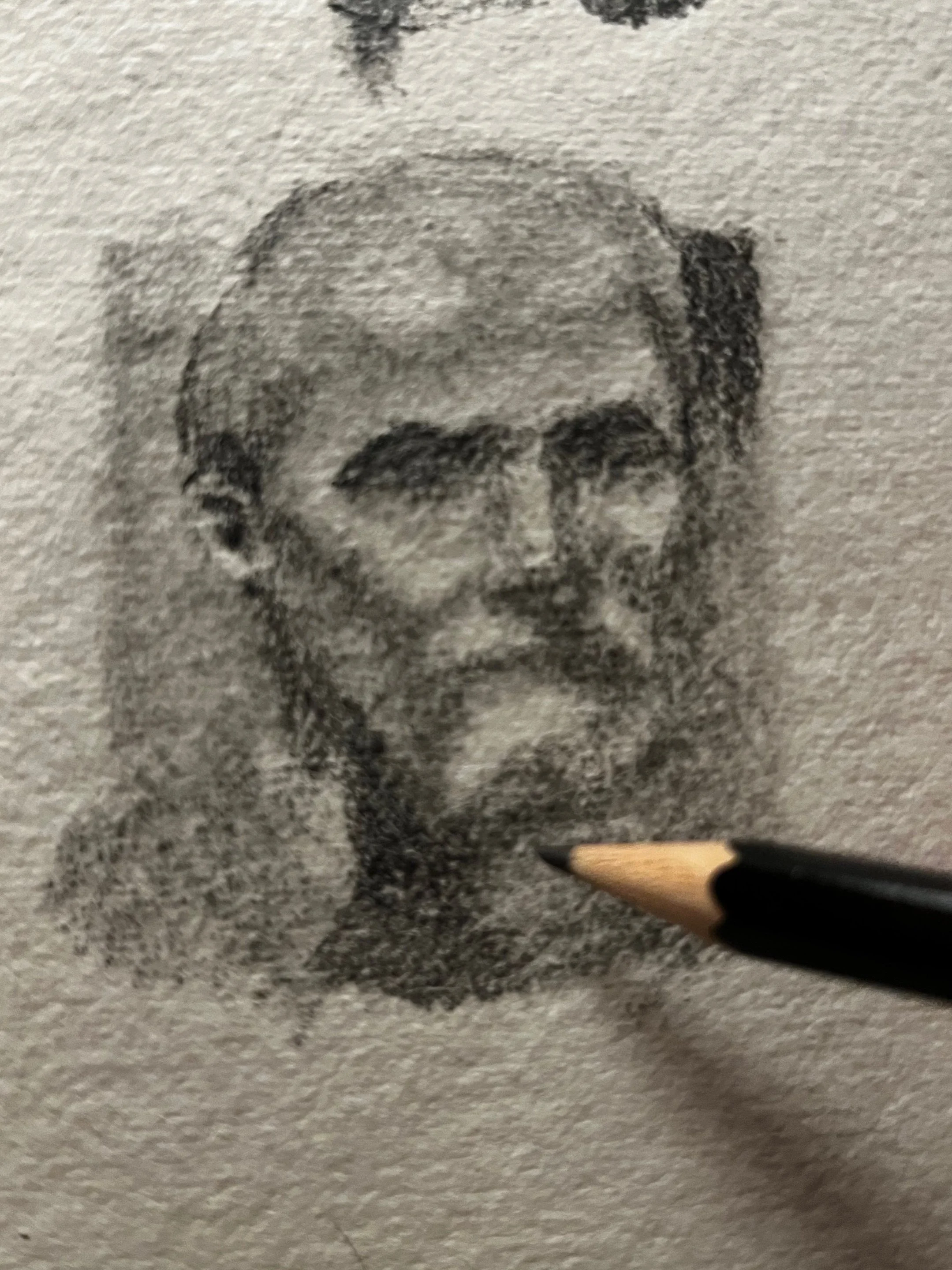 The way I segment the 3 hours we have in class is to start the first half with analysing old masters techniques of drawing their self portrait. Here I use three sketches by prominent old masters, Rembrandt, Van Gogh, and Egan Schiele. The chosen images are pencil drawing and etching that prominently shows the use of lines. I intentionally wanted to explore this because we can learn so much by just combining the felt sensation of drawing, while slowly infused by masterful artists’s works, as we absorb and marinate by drawing. Yes someone can call it copying, but this is more than that.