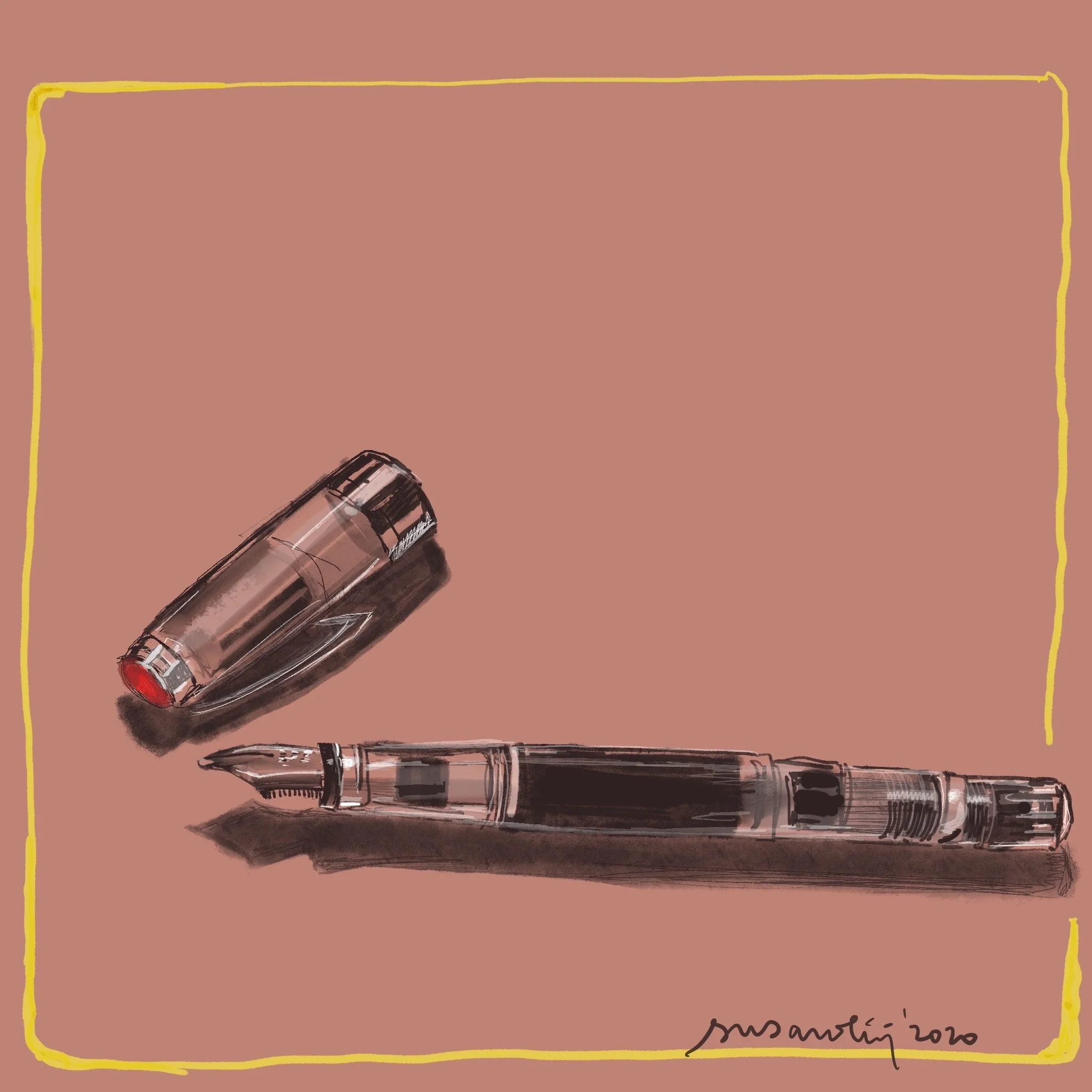 This is a digital drawing of my fountain pen. It’s done on procreate, and it has the feel of something real because I see the right elements, like the shine of the transparent exterior on the fountain pen and so I put those elements in the places that would show an illusion of shine.