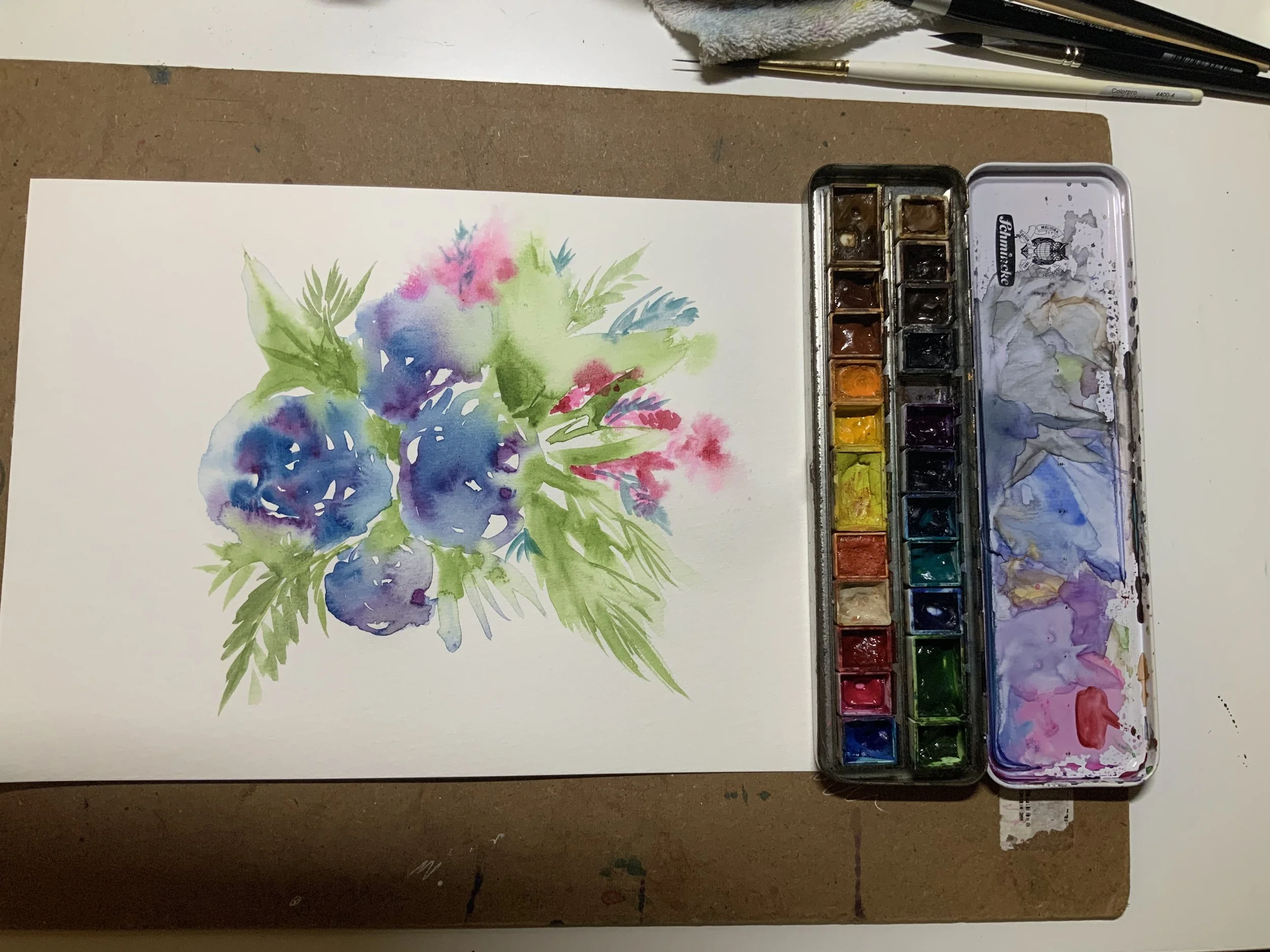 It doesn’t mean you have to throw out your pans and start buying tubes, it just means that maybe you can see and feel the difference for yourself if you have both types of watercolour. It just means if you have only pans, that you can still use just 3 colours and see the colour of your water at the end of the painting, is it brown? Is it muddy like chocolate milk? Or is it kinda like watered down milo where you can still see through it.